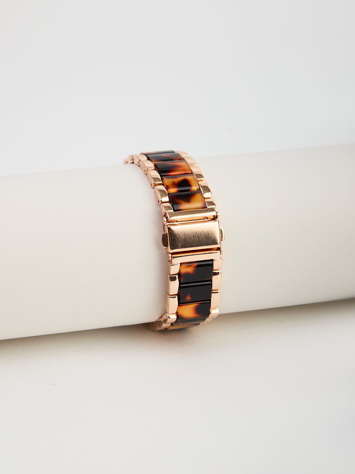Our Tortoise Shell Apple Watch Band offers a chic, vintage-inspired upgrade, perfectly blending a timeless pattern with modern technology. The band features beautiful tortoise shell pattern links set in a polished metallic frame, creating a warm, elegant contrast against the watch face. Pair this sophisticated band with a stack of simple gold jewelry and wear it with a tailored black blazer for a polished, classic look.