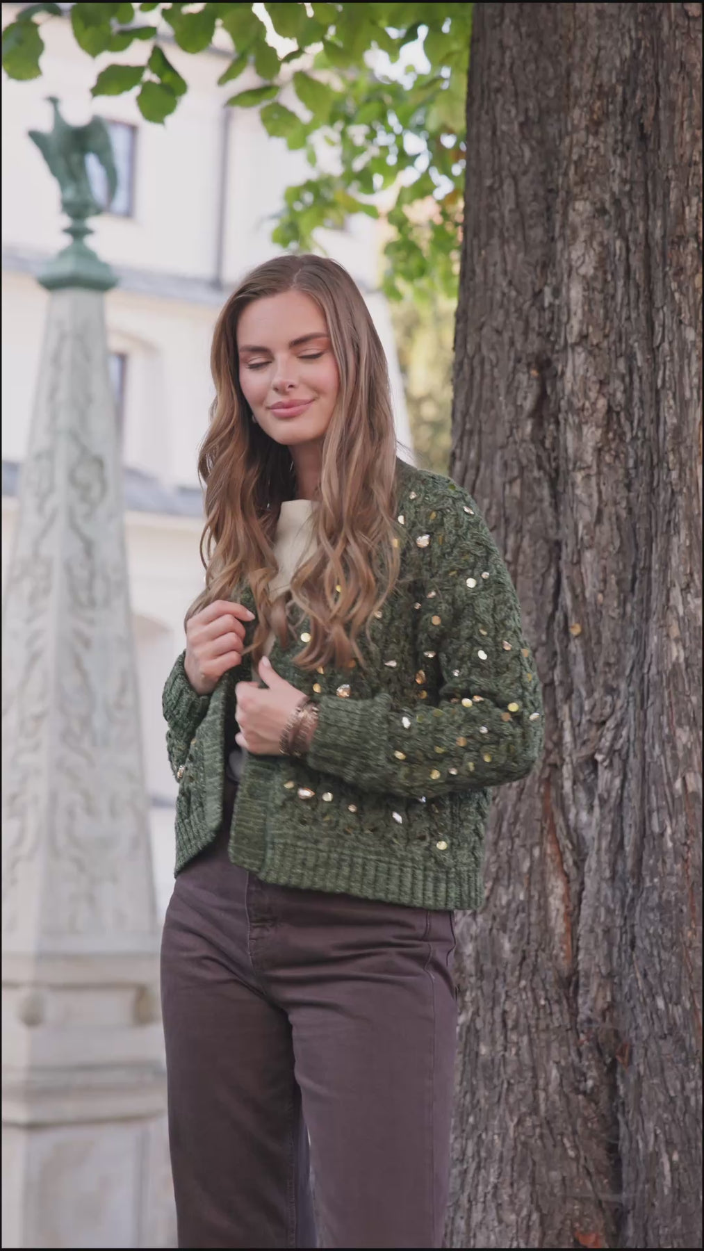Elevate your style with the Deco Cable Knit Cardigan, a luxurious piece designed for sophisticated comfort. This exquisite cardigan features a rich cable knit texture, with shimmering sequins and crystals stitched throughout to give you elevated shine. Perfect for adding a touch of glamour and warmth, it effortlessly complements both casual daytime outfits and elegant evening wear.