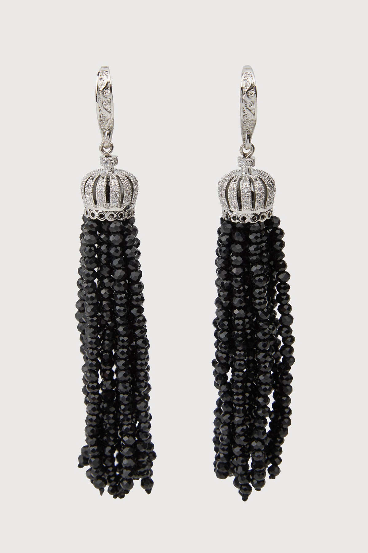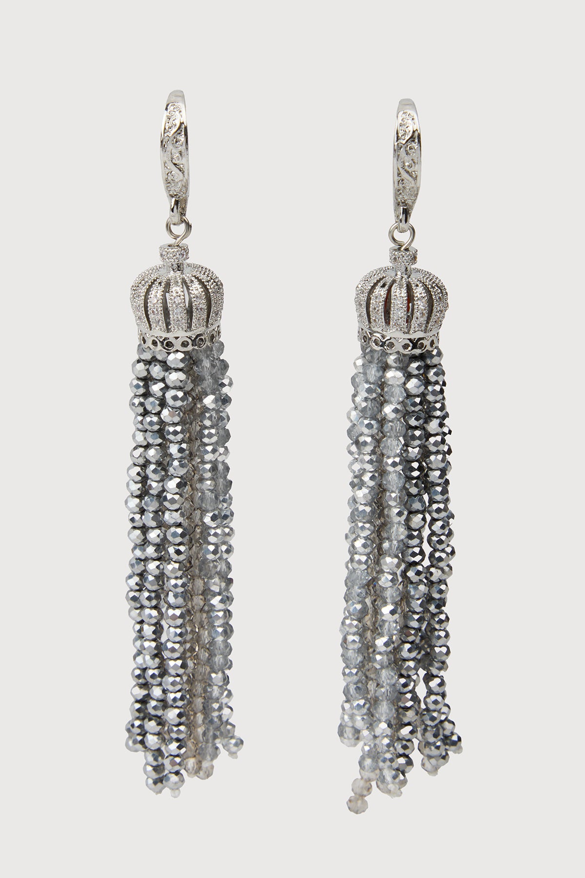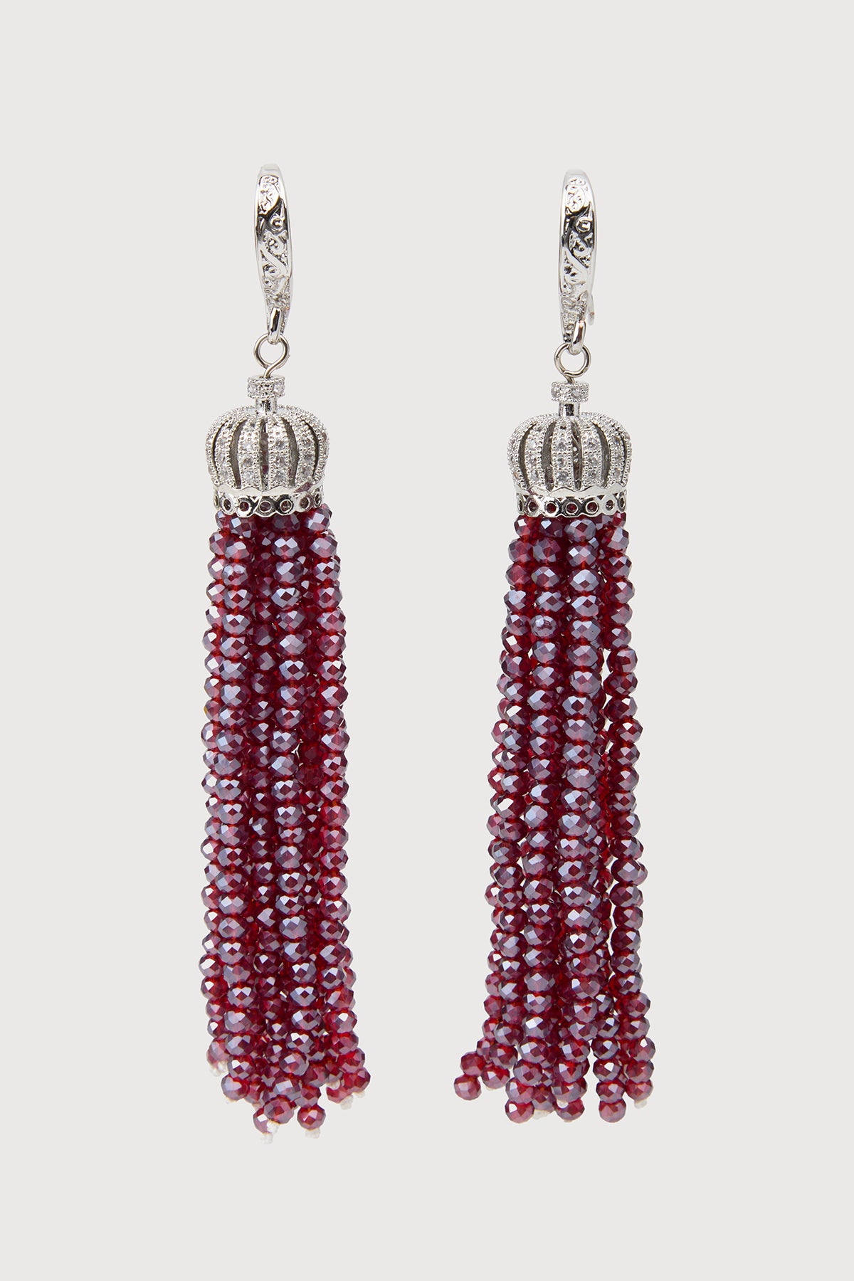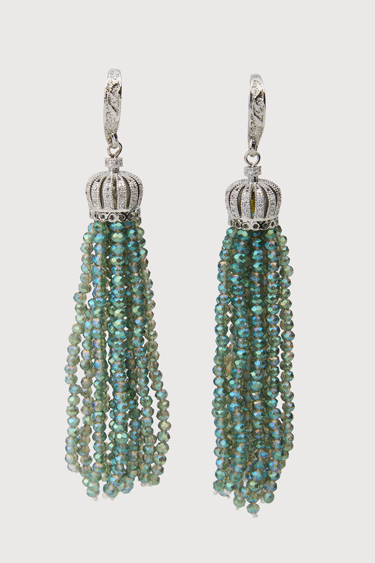 Make a regal statement with our Crown Tassel Drop Earrings. These elegant earrings feature an intricately designed, sparkling crown top from which multiple strands of glittering beads cascade, forming a luxurious tassel drop. They are the perfect accessory for special occasions and a variety of events. Available in plenty of colors to perfectly match your unique style, whether you're looking to elevate your look for a gala, a party, or to match a dress for a wedding.