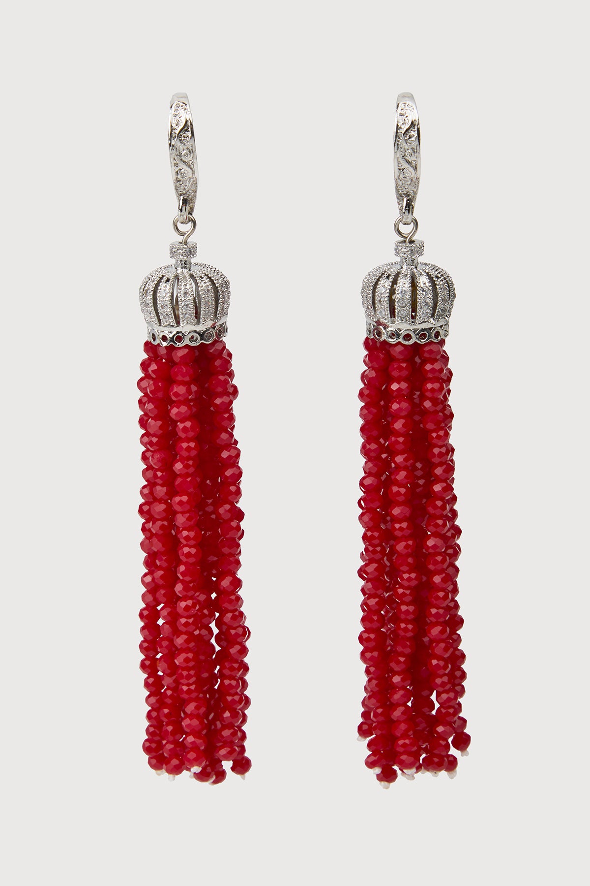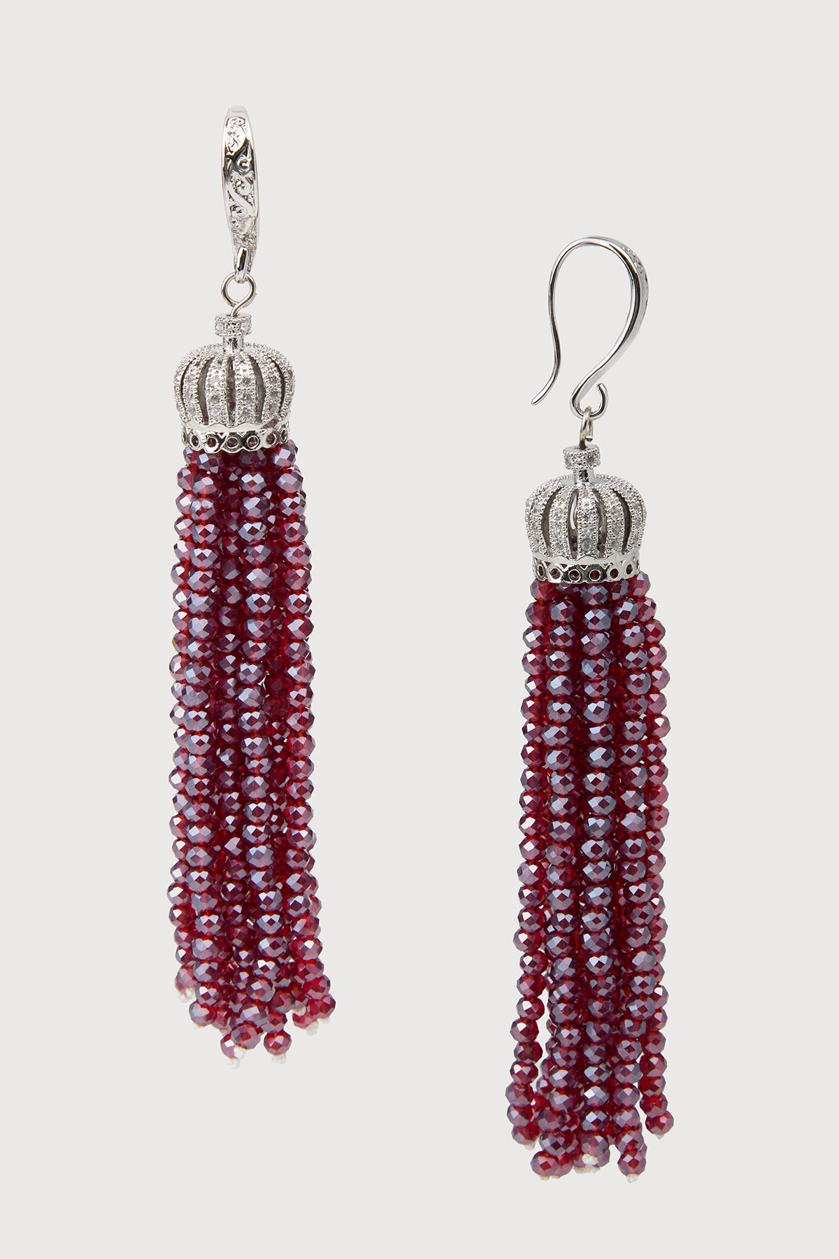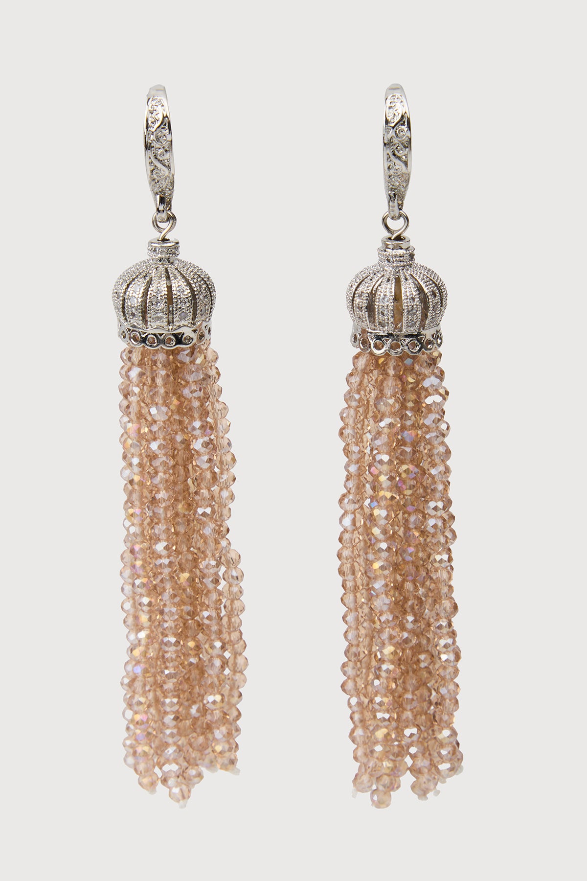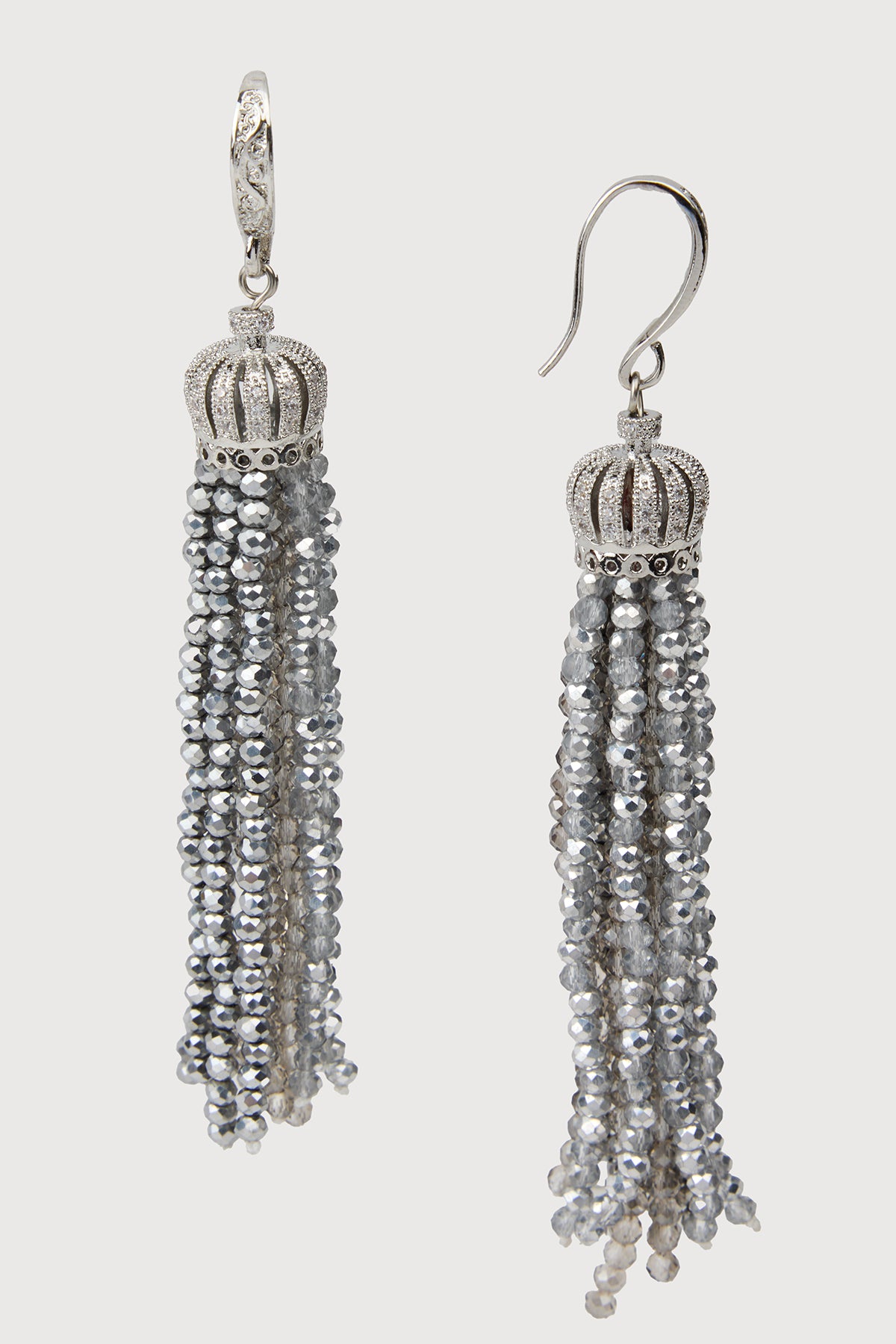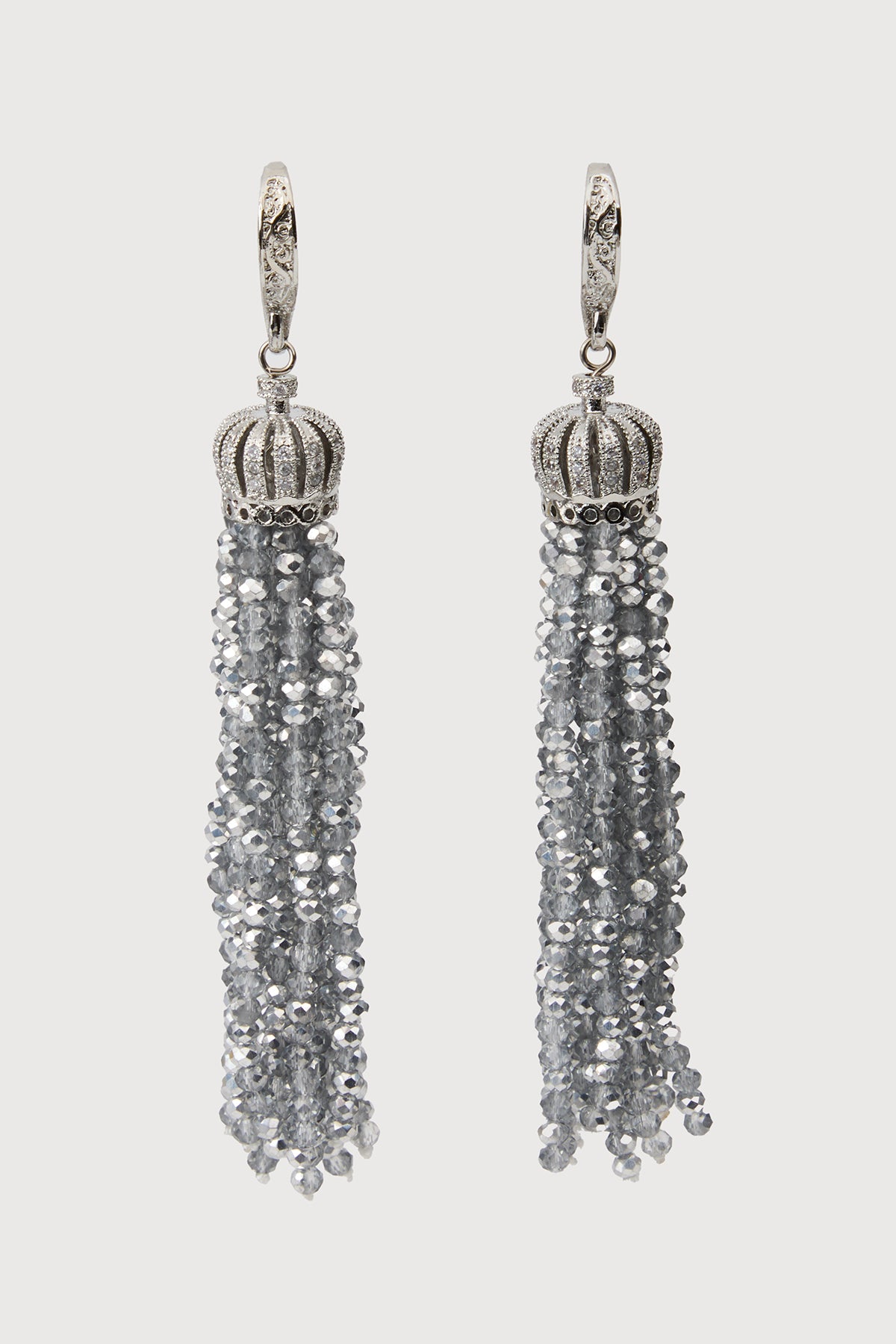Make a regal statement with our Crown Tassel Drop Earrings. These elegant earrings feature an intricately designed, sparkling crown top from which multiple strands of glittering beads cascade, forming a luxurious tassel drop. They are the perfect accessory for special occasions and a variety of events. Available in plenty of colors to perfectly match your unique style, whether you're looking to elevate your look for a gala, a party, or to match a dress for a wedding.