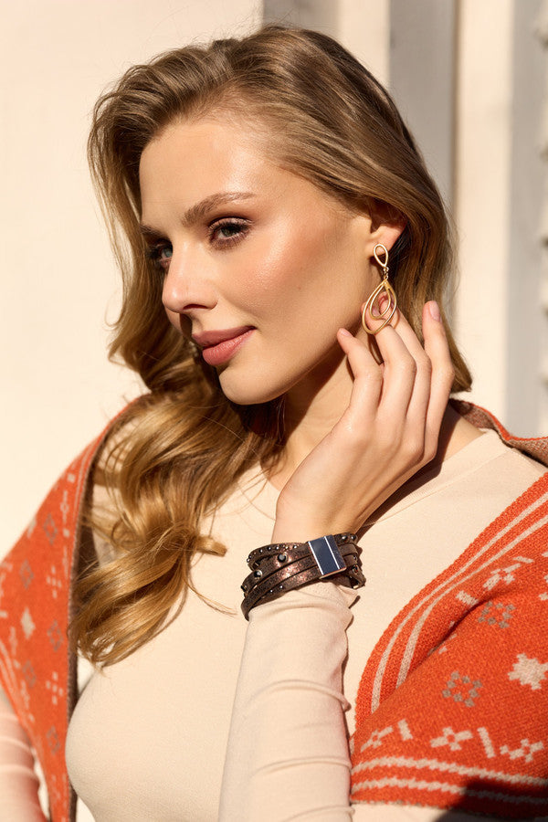 Our Abstract Double Oval Open Frame Dangle Earrings feature an oval upper dangle, meticulously crafted to add an element of intrigue to your ensemble. Two open-frame, oval-shaped earrings suspend from the elegant upper dangle, adding a touch of geometric allure to the overall design. The delicate balance between intricacy and simplicity makes these earrings a versatile accessory that's suitable for casual and formal occasions.