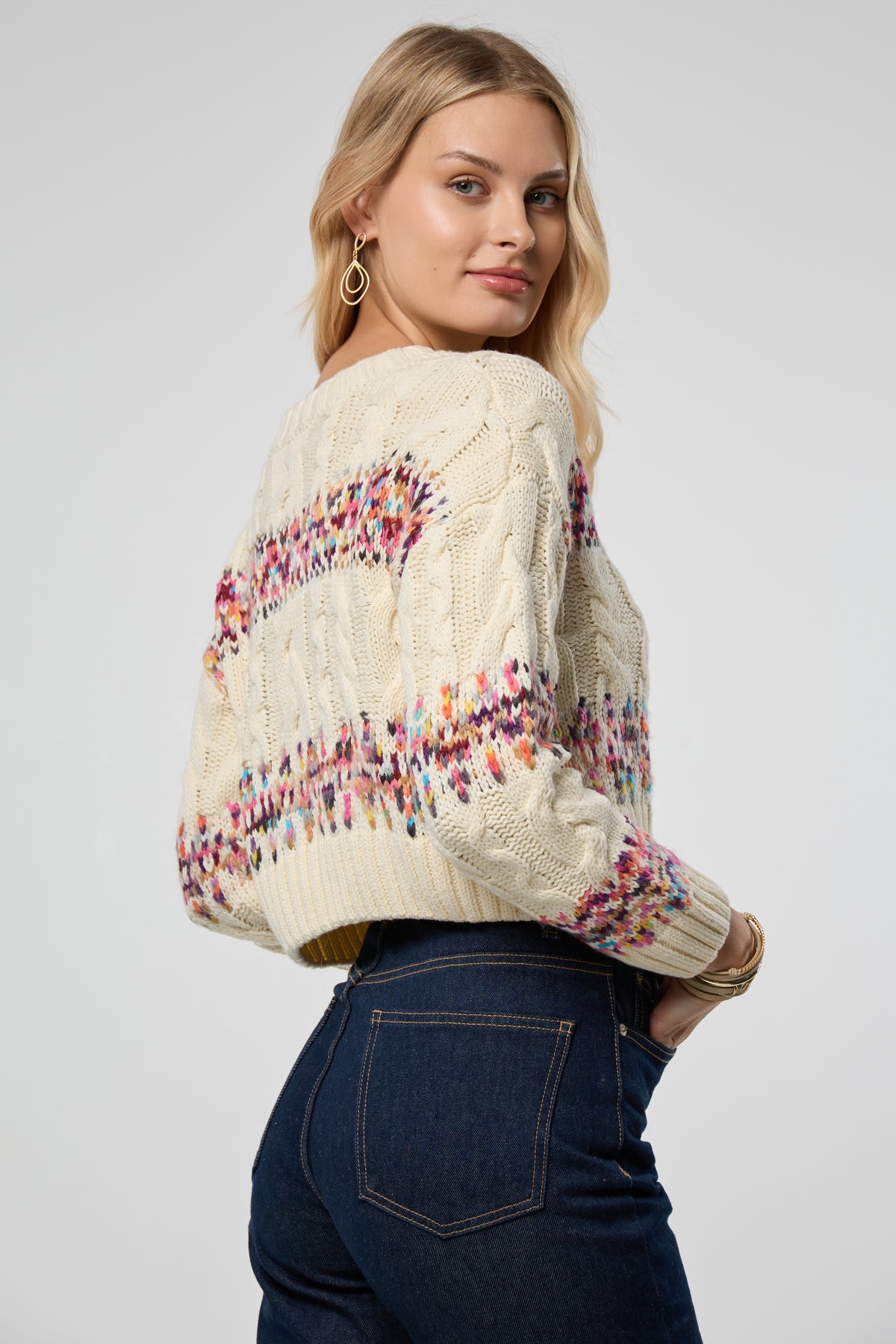 Step out in style with our Fair Isle Cable Knit Button Cardigan, a delightful piece that adds cozy charm to your wardrobe. This exquisite cardigan features a classic cable knit texture intertwined with a vibrant Fair Isle pattern, creating a rich and inviting design. Complete with a full button-down front, it effortlessly blends traditional elegance with comfortable warmth, making it perfect for both casual outings and festive occasions.