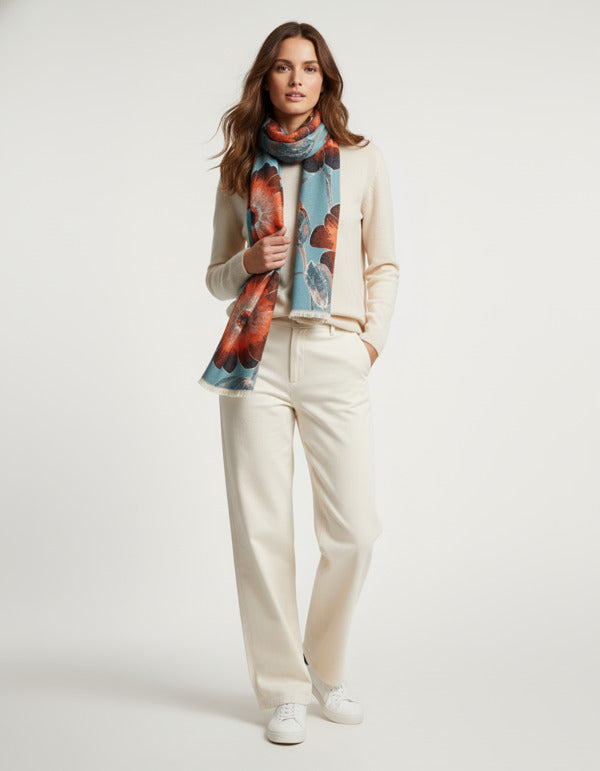 Reversible Blooming Botanical Scarf TS TB4022808 Reversible Scarf Brown