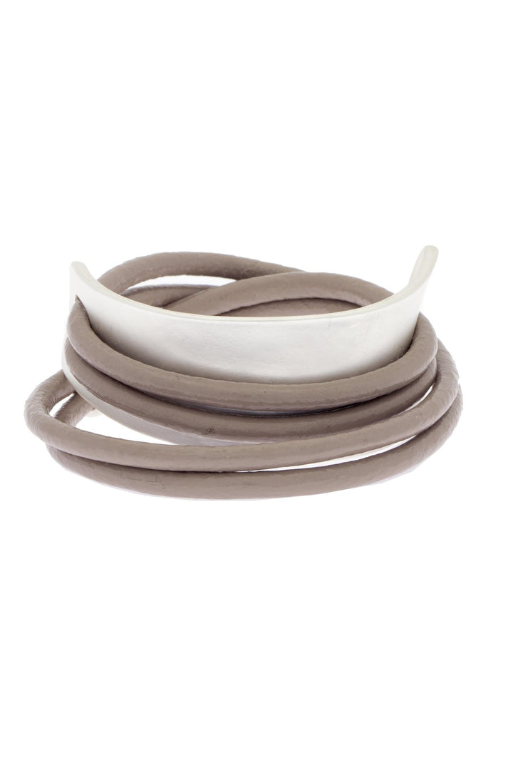 "Your going out to dinner again, but want something more than just flashy jewelry, so you pull out your Swish bracelet, and as you walk it sways with every step, wrapping around your wrist in multi-black vegan leather strands, surrounding a silvery metal plate, along with a magnetic clasp for easy removal.