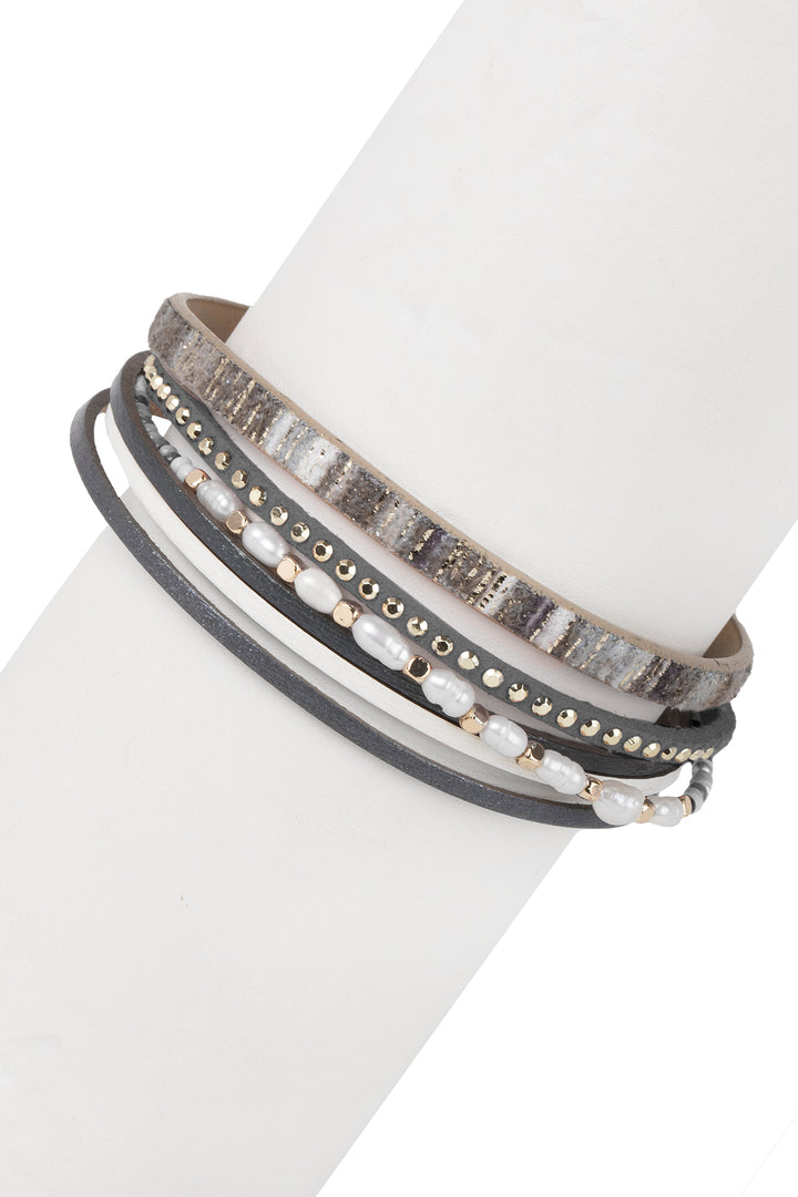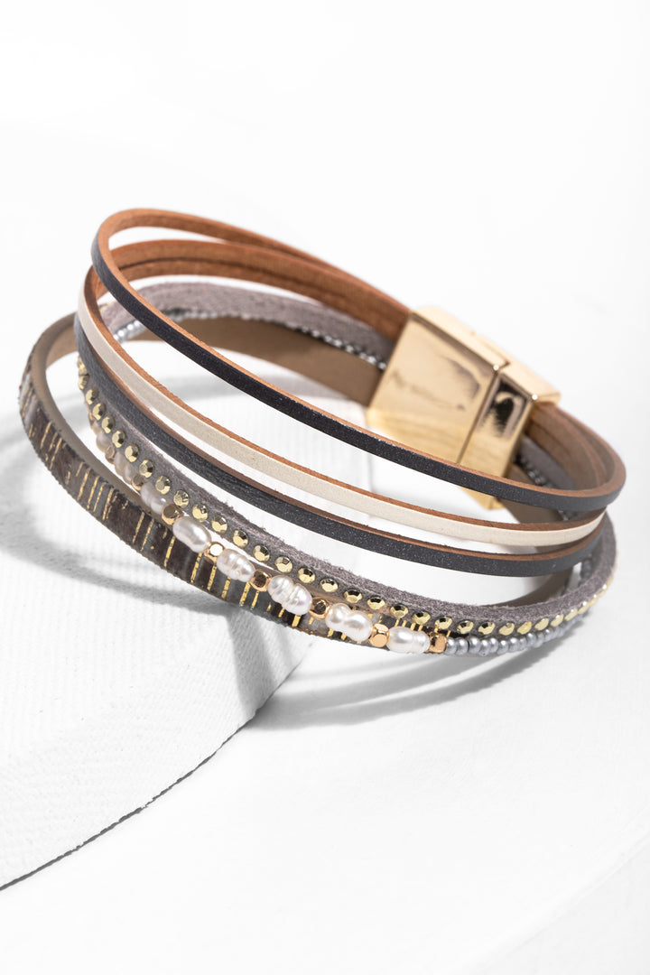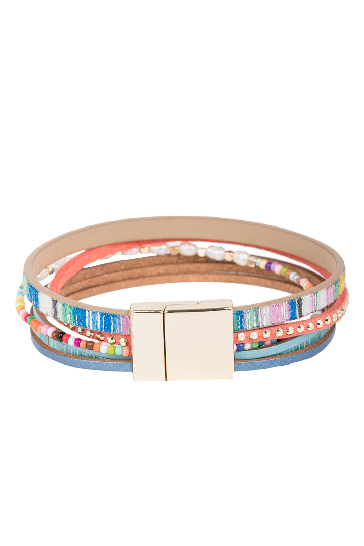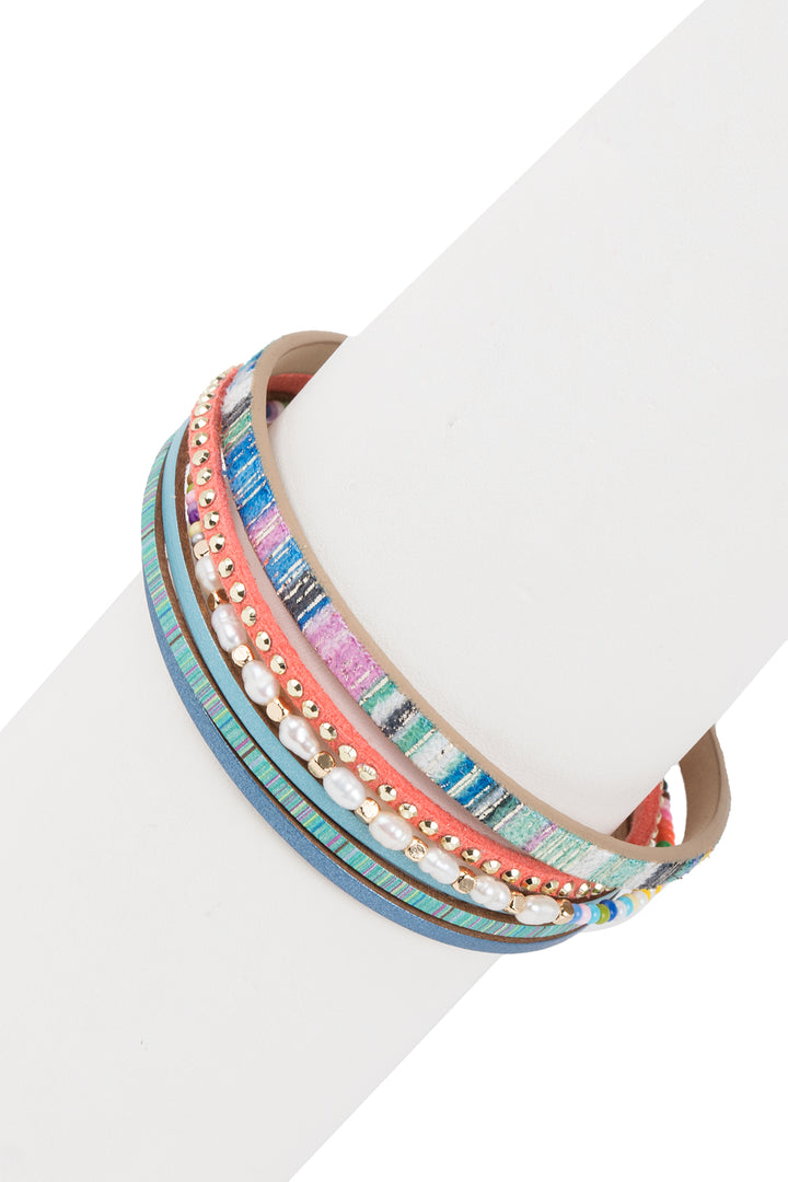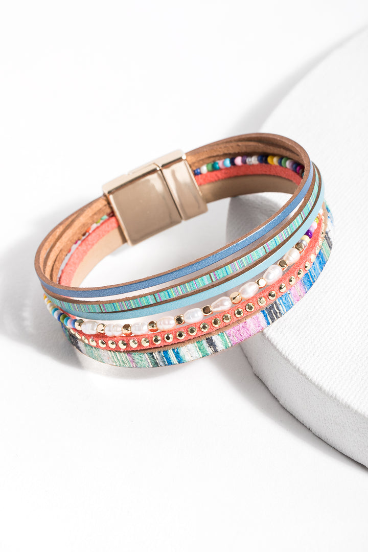 Like a vacation you can wear, this whimsical bracelet features layers of colorful leather, beads, crystals, and delicate freshwater pearls. Our Curacao Beaded Bracelet is eye-catching and brings sun-soaked color to any outfit. With its magnetic clasp, it's super easy to put on and take off.